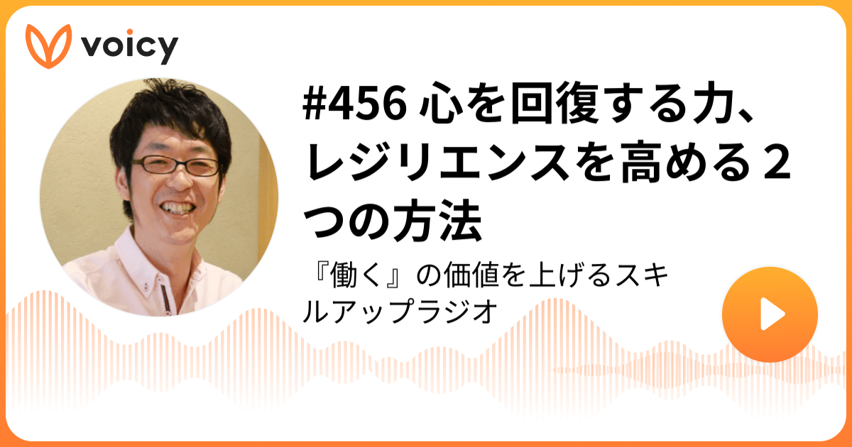 #456 心を回復する力、レジリエンスを高める2つの方法 | タカハシノリアキ「『働く』の価値を上げるスキルアップラジオ」/ Voicy - 音声プラットフォーム