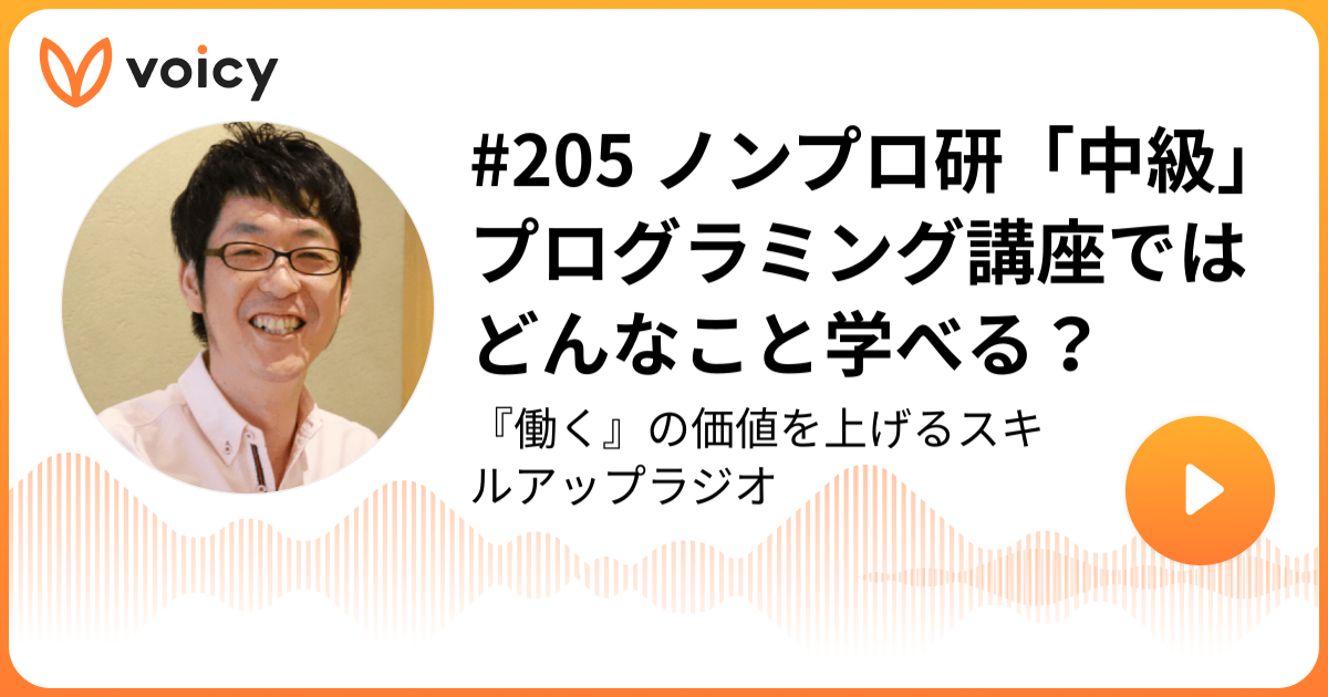 #205 ノンプロ研「中級」プログラミング講座ではどんなこと学べる? | タカハシノリアキ「『働く』の価値を上げるスキルアップラジオ」/ Voicy - 音声プラットフォーム