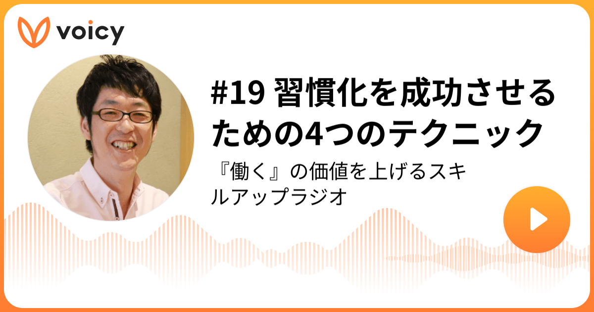 #19 習慣化を成功させるための4つのテクニック | タカハシノリアキ「『働く』の価値を上げるスキルアップラジオ」/ Voicy - 音声プラットフォーム