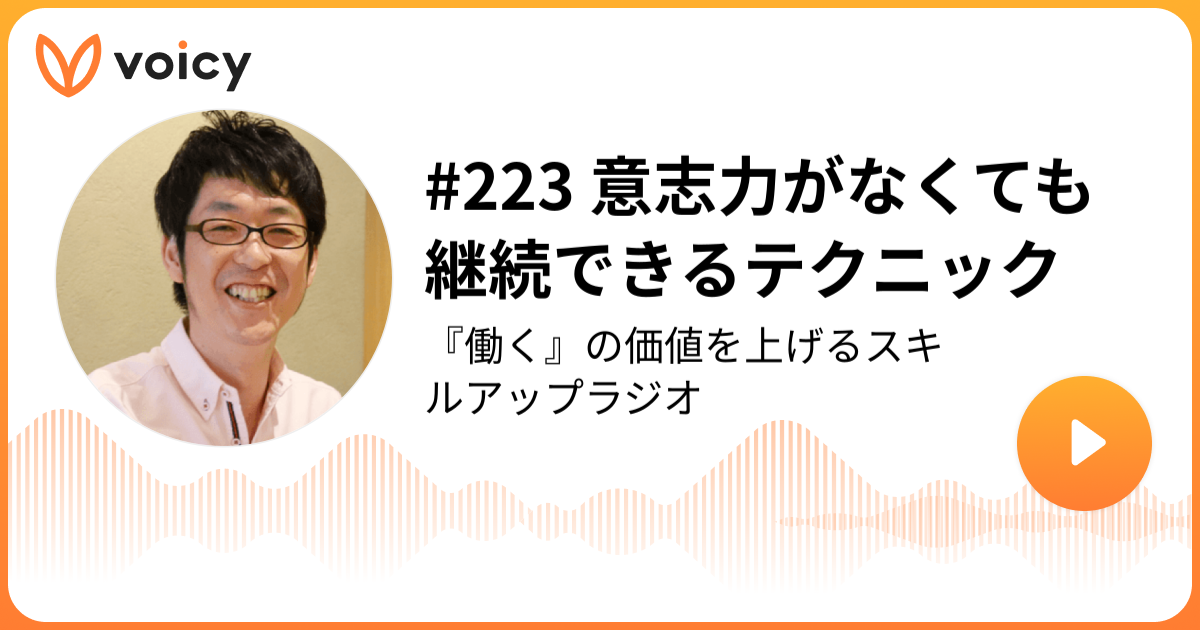 #223 意志力がなくても継続できるテクニック | タカハシノリアキ「『働く』の価値を上げるスキルアップラジオ」/ Voicy - 音声プラットフォーム
