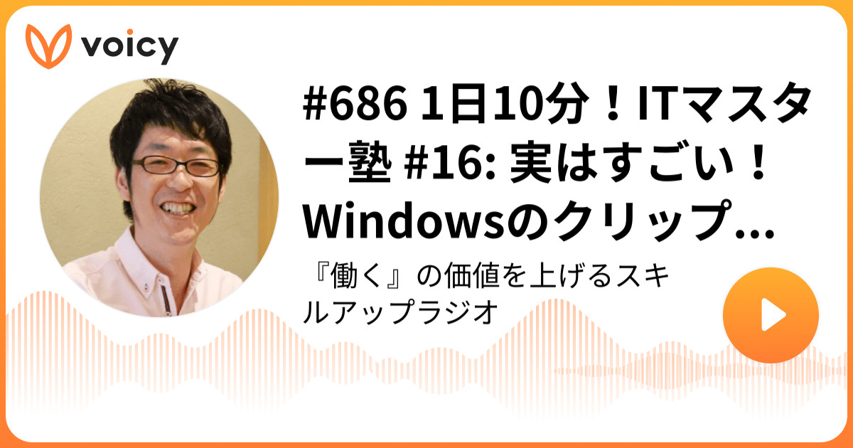 ということで、今日はVoicy「スキルアップラジオ」の放送から「1日10分!ITマスター塾 #16: 実はすごい!Windowsのクリップボードの活用テクニック」をお届けしました。