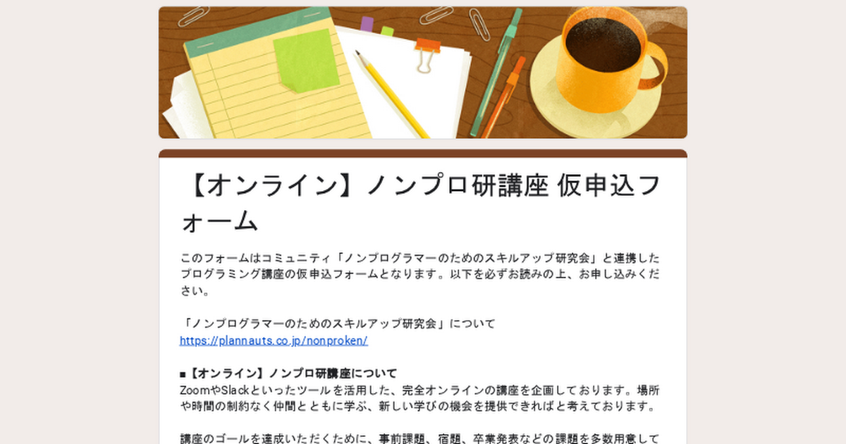 こちら技術ライティング講座の希望をつのるようなものになっていまして、フォーム送信をしていただいた方が5名集まった時点で、実際にスケジュールを組んで開講するという仕組みになっています。