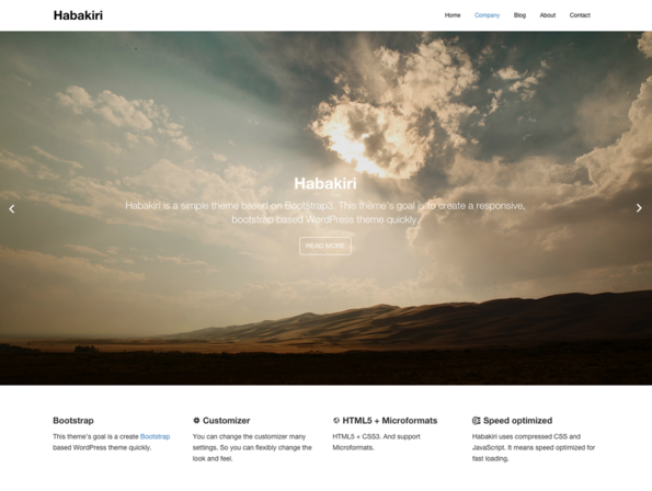 - フロントページをHomeという新規の固定ページにしつつテンプレートをHabakiriのRich Frong Page